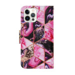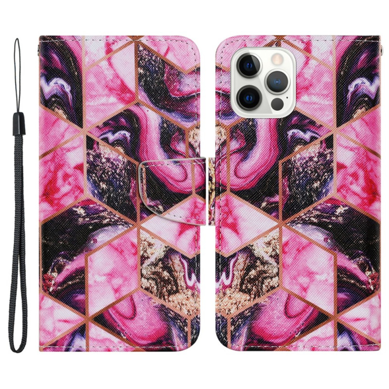 Proteja o seu iPhone 13 Pro Max com estilo com esta elegante capa de carteira com um padrão geométrico cor-de-rosa. Com ranhuras para cartões, uma prática correia de pulso e um suporte integrado, esta capa combina praticidade e design moderno para o seu dia a dia.