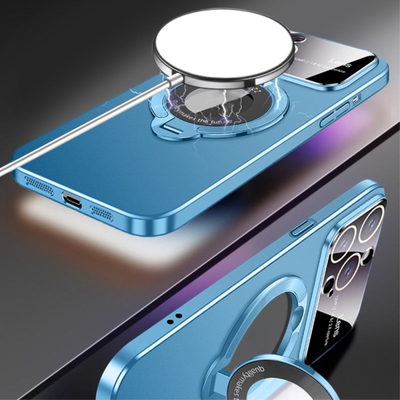 Proteja o seu iPhone 13 Pro Max com estilo com esta capa magnética multifunções. Com um suporte de anel integrado para visualização em mãos-livres e proteção reforçada da protecção para lente , oferece uma compatibilidade MagSafe óptima.