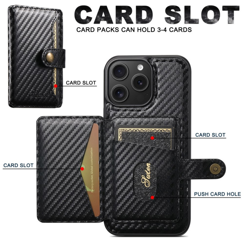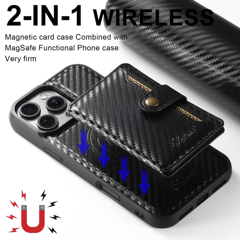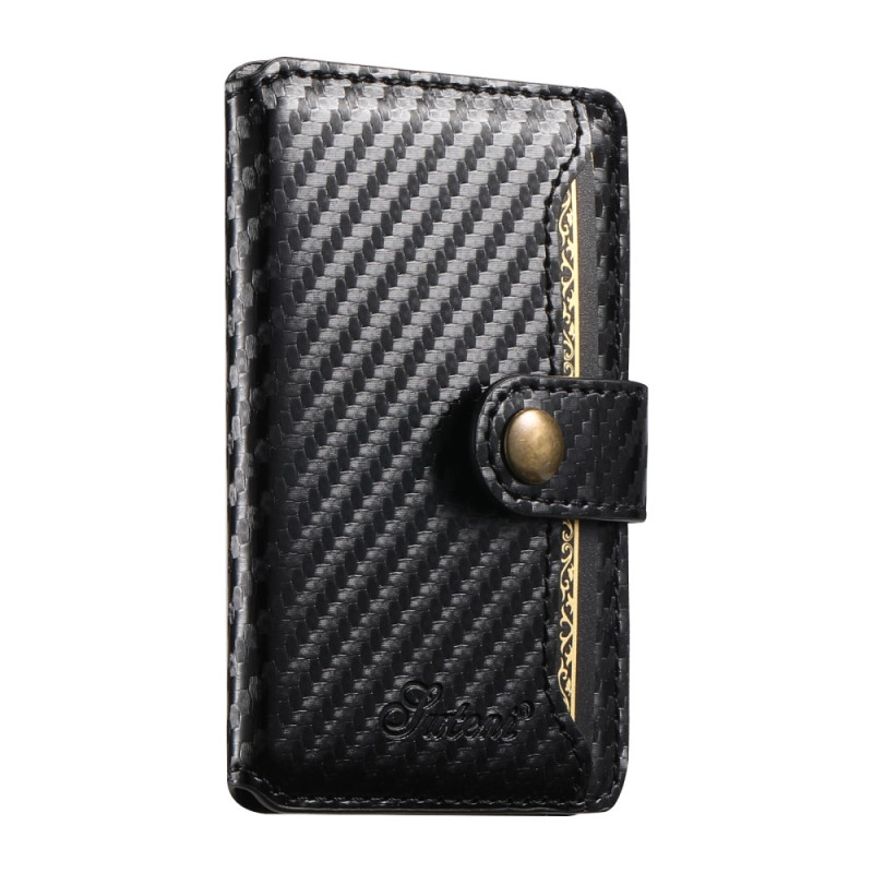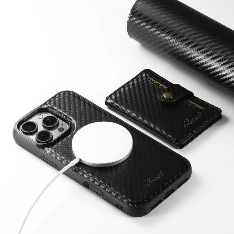 Descubra a capa magnética SUTENI H20 para iPhone 13 Pro: design elegante com textura de fibra de carbono, suporte amovível para 3-4 cartões, suporte mãos-livres ajustável e compatível com MagSafe. Proteção óptima com funcionalidade 2 em 1.