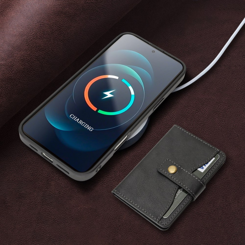 Capa multifunções para iPhone 13 Pro que combina proteção, praticidade e elegância. Compatível com MagSafe, com suporte para cartões magnéticos amovível e suporte ajustável integrado. Perfeita para guardar os seus cartões e desfrutar de uma visualização sem mãos.