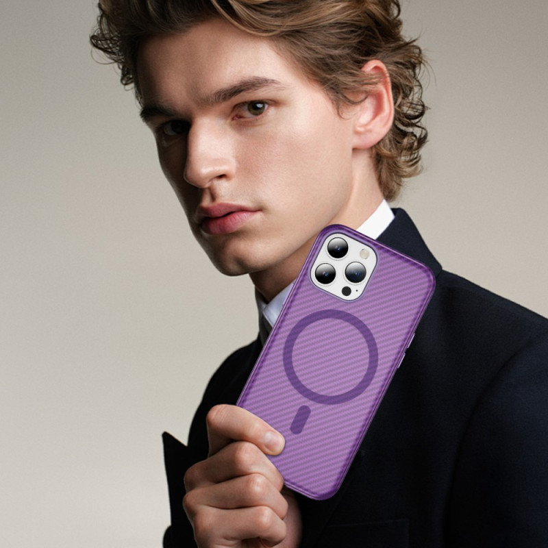 Proteja o seu iPhone 13 Pro com estilo com esta capa premium com textura de fibra de carbono. Compatível com MagSafe, oferece uma aderência confortável e segura, ao mesmo tempo que proporciona uma proteção óptima contra choques e riscos.