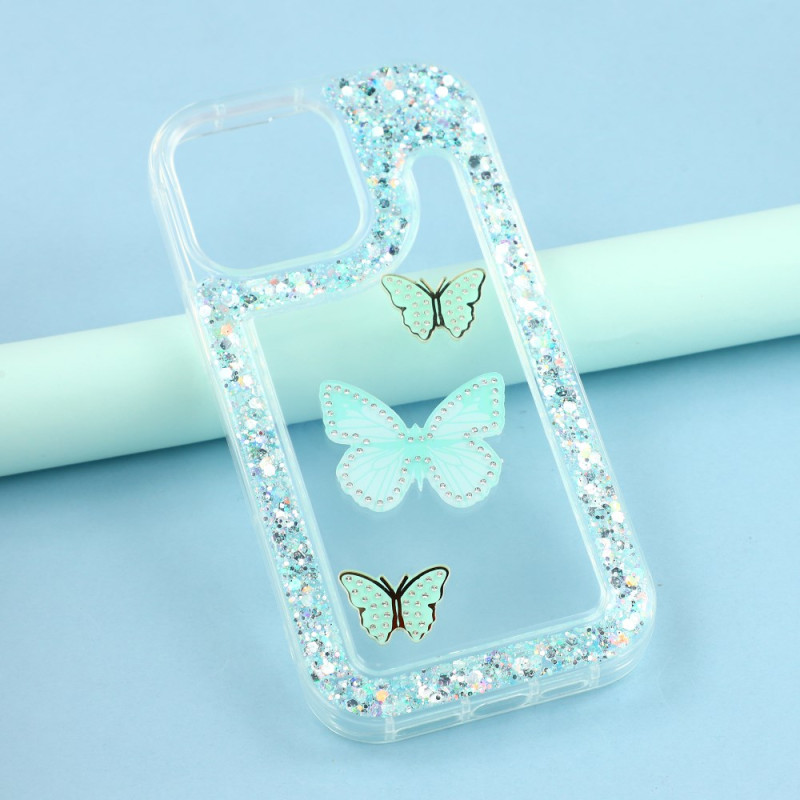 Proteja o seu iPhone 13 Pro com estilo com esta capa que apresenta uma magnífica borboleta 3D rodeada de lantejoulas brilhantes. Fabricada em TPU flexível com uma camada de resina epóxi, oferece uma proteção óptima contra choques, riscos e desgaste diário, mantendo o seu telefone com o melhor aspeto possível.