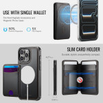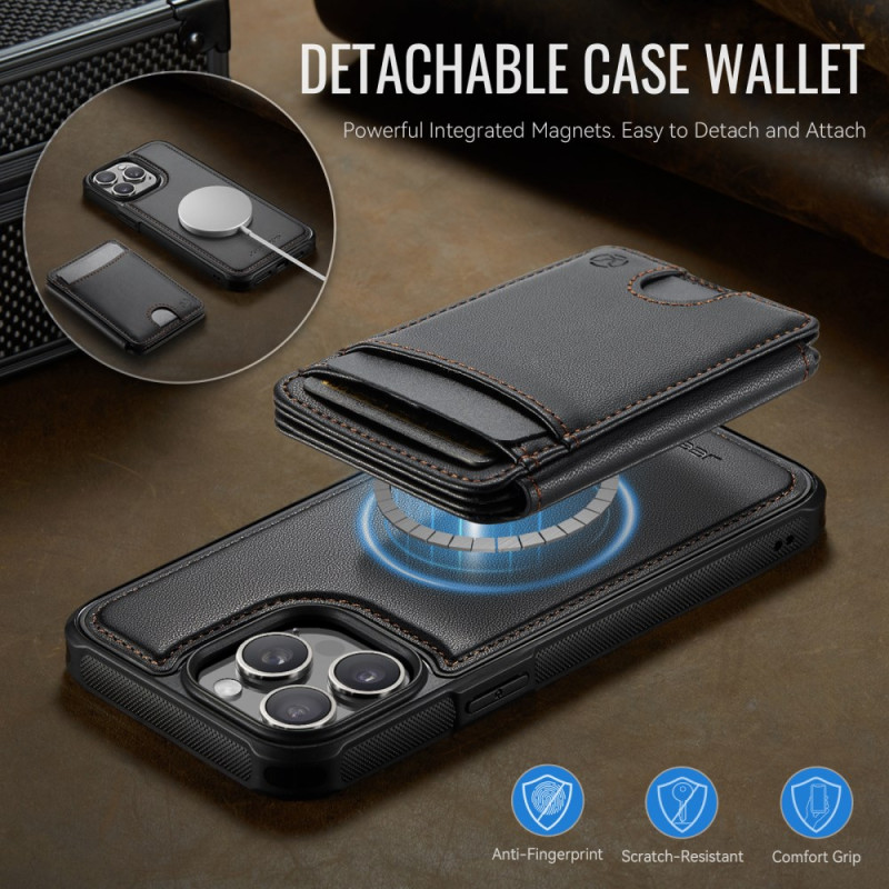 Proteja e organize-se com estilo com esta capa multifunções para iPhone 13 Pro. Desfrute de um suporte para cartões com 6 ranhuras amovível com proteção RFID, um suporte ajustável para visualização em mãos-livres e compatibilidade MagSafe.