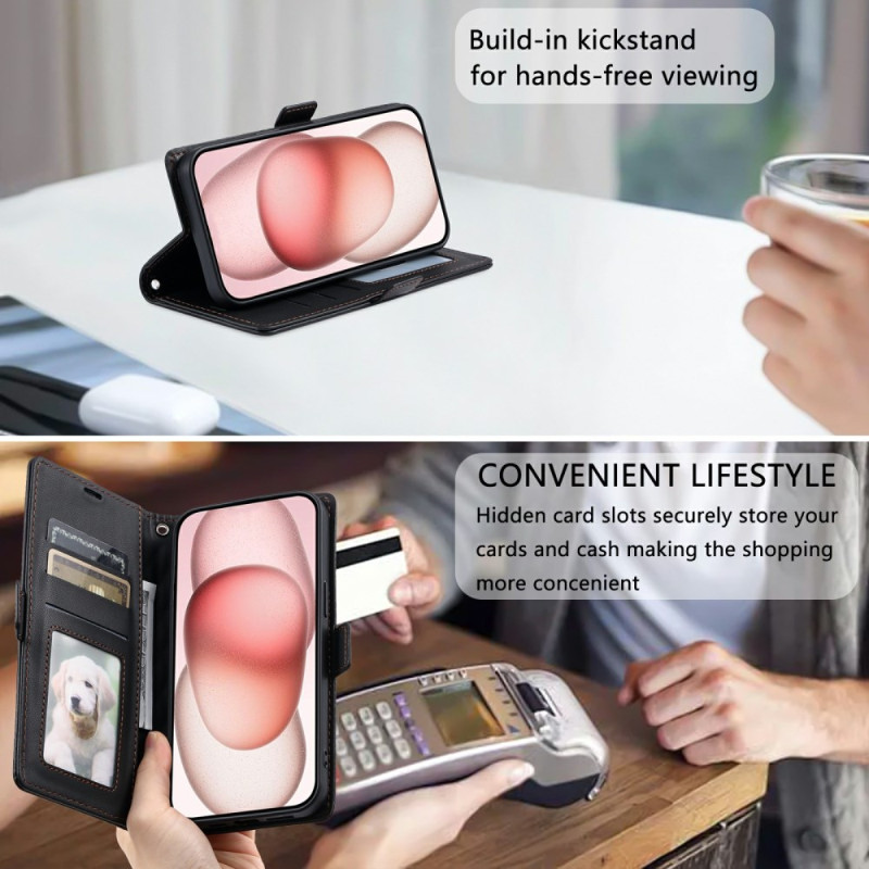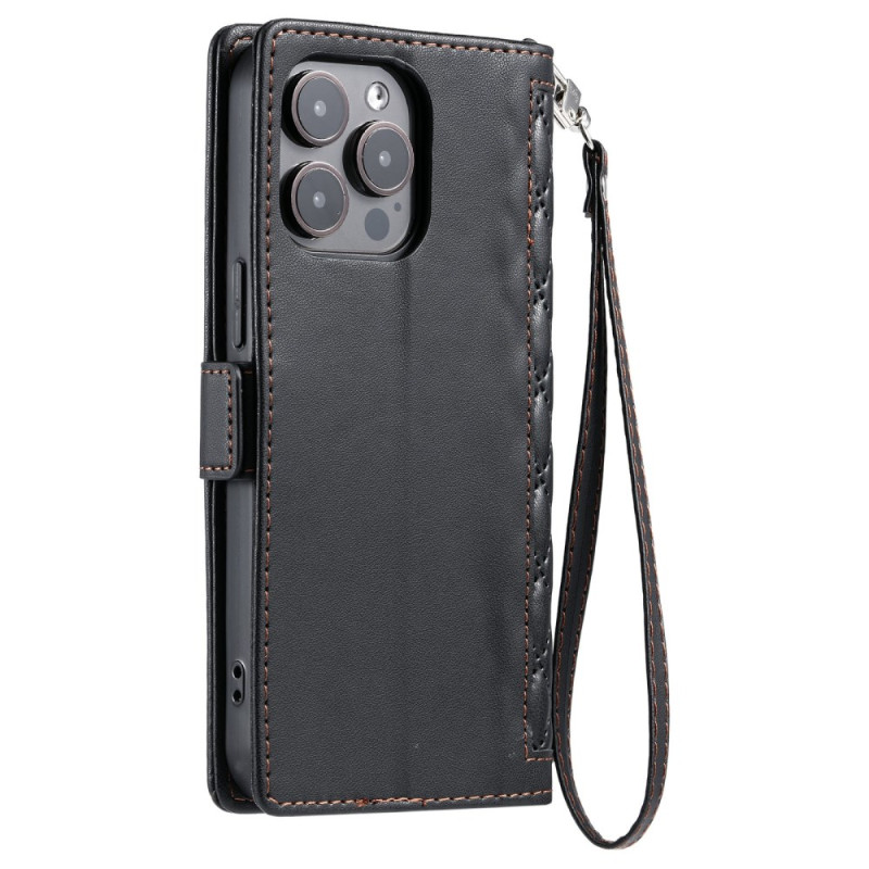 Proteja o seu iPhone 13 Pro com estilo com esta capa multifunções para carteira. Design texturado refinado, 3 ranhuras para cartões e 1 bolso para dinheiro. Suporte mãos-livres integrado e alça de mão prática para uma segurança óptima.