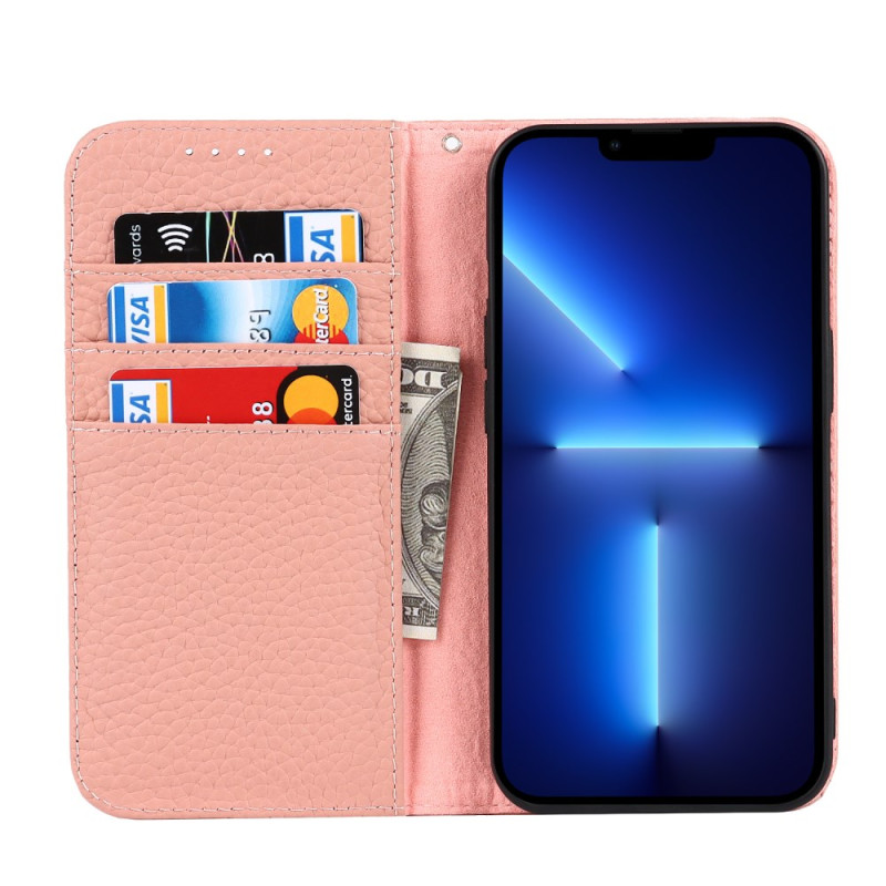 Descubra a combinação perfeita de elegância e praticidade com esta capa para carteira em pele genuína com textura de lichia. Concebida especificamente para o iPhone 13 Pro, combina proteção de qualidade superior, armazenamento de cartões e suporte para a derradeira experiência diária.