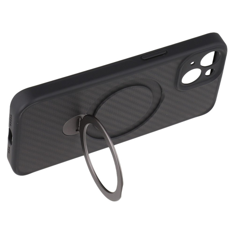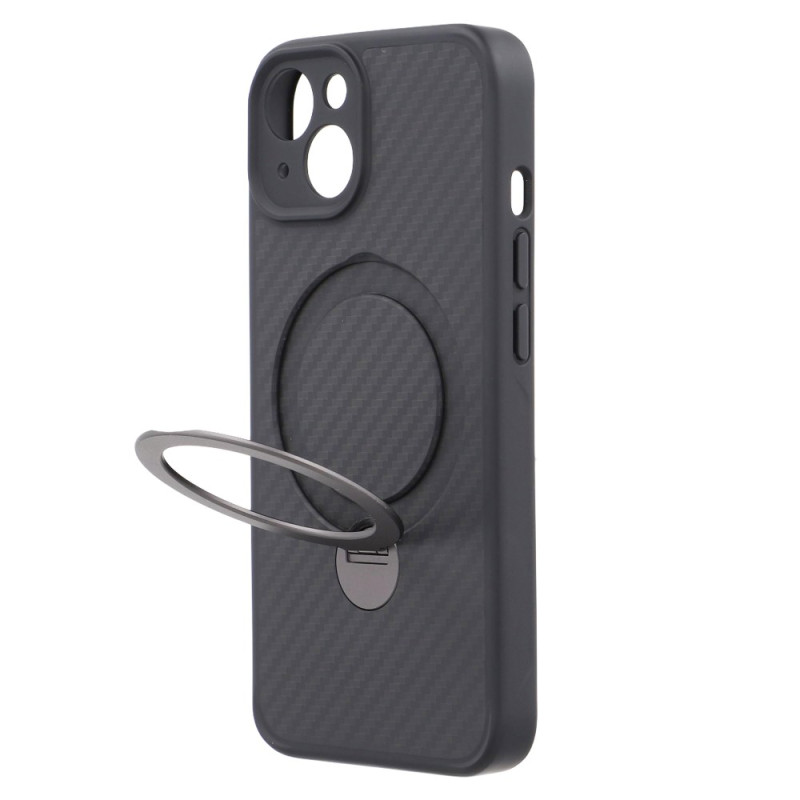 Descubra a nossa elegante capa para iPhone 13, compatível com MagSafe. Com um suporte rotativo de 360°, oferece uma proteção robusta com a sua textura de fibra de carbono. Desfrute de um carregamento sem fios eficiente e de uma utilização prática graças ao anel magnético integrado e aos recortes precisos.