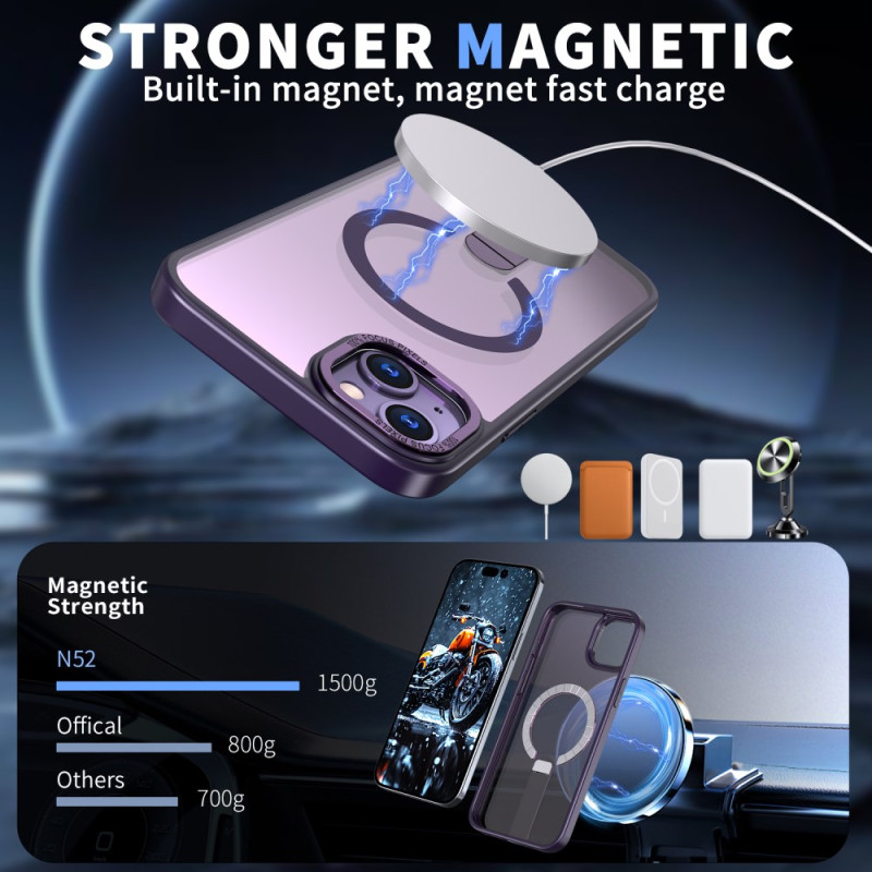 Descubra a nossa inovadora capa para iPhone 14 Plus, concebida para oferecer uma proteção óptima e uma compatibilidade perfeita com MagSafe. Com um suporte integrado versátil, esta capa combina funcionalidade e estilo. Desfrute de uma poderosa força magnética, proteção melhorada e um ajuste preciso.