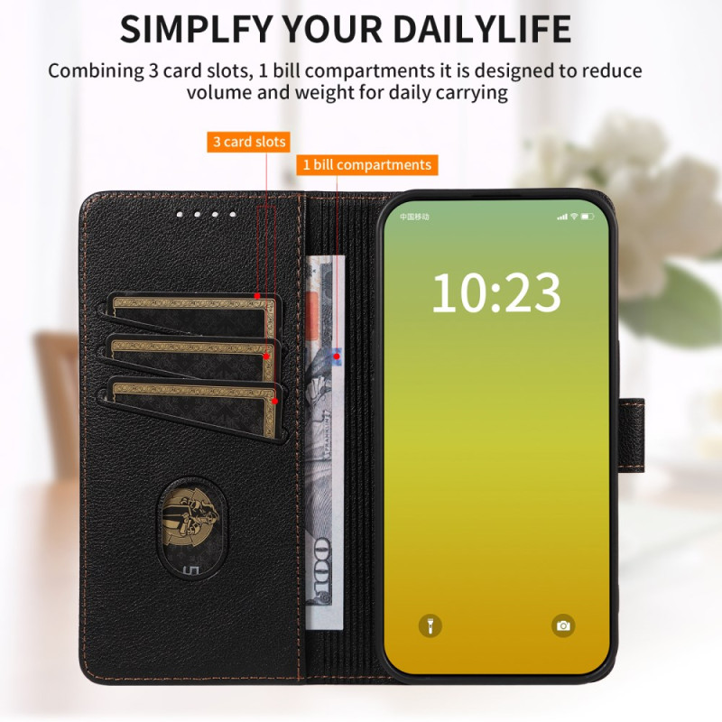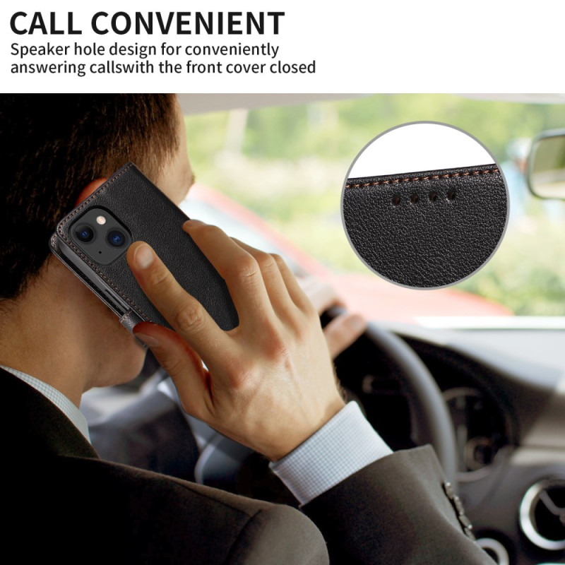 Découvrez notre housse portefeuille en cuir pour iPhone 14 Plus. Dotée d'une texture litchi élégante, elle offre une protection RFID, des rangements pratiques et une fonction support. Fabriquée en cuir PU de qualité supérieure et en TPU, elle assure durabilité et style tout en protégeant votre téléphone.