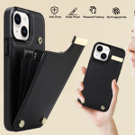 Descubra a nossa capa elegante e funcional para o iPhone 14 Plus. Fabricada em TPU de alta qualidade e couro PU com detalhes metálicos, oferece uma proteção robusta contra riscos e impressões digitais. O suporte para cartões integrado permite guardar até três cartões e notas, mantendo os seus objectos essenciais sempre à mão.