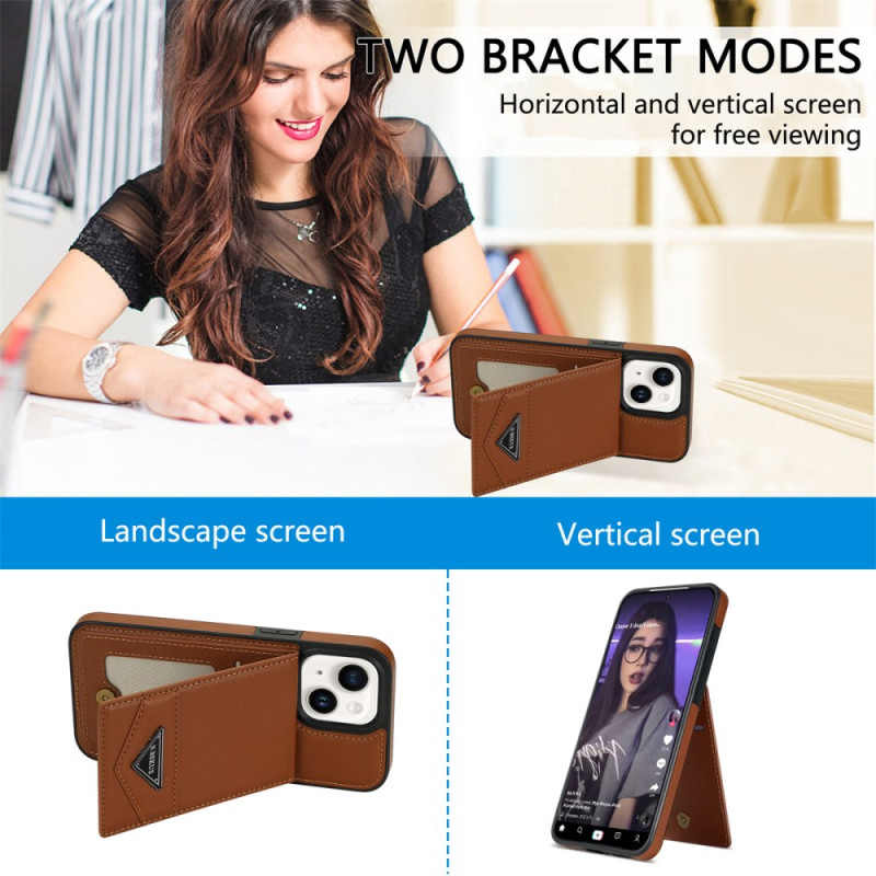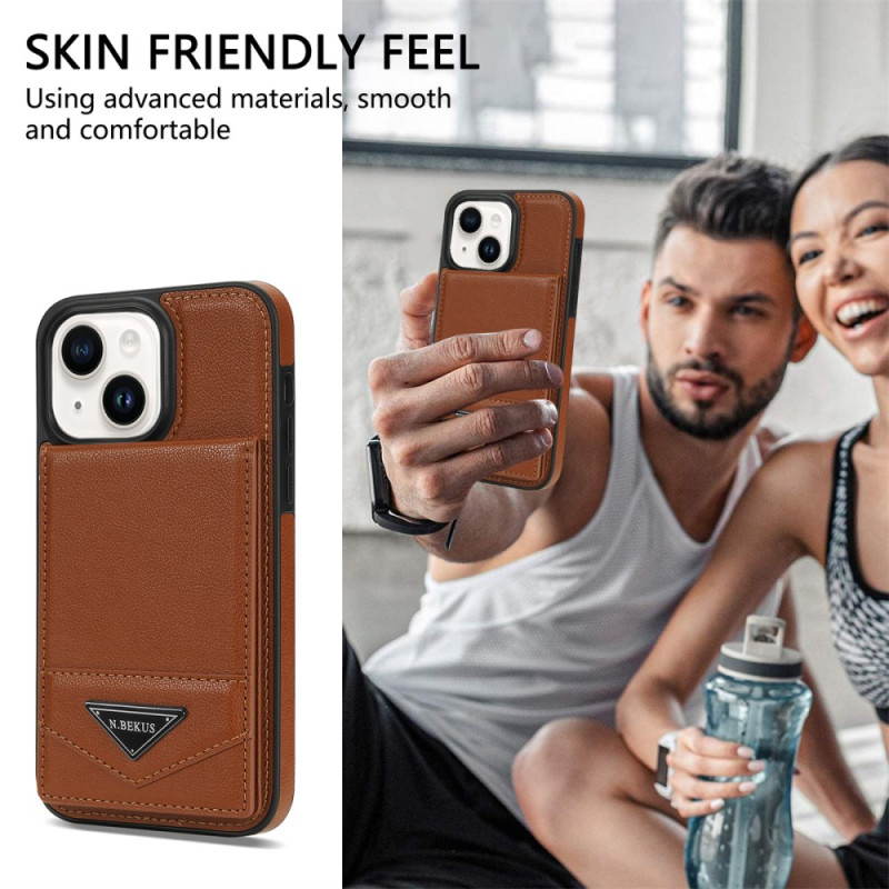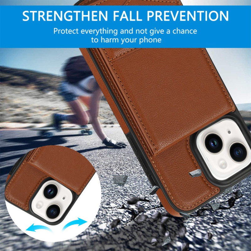 Descubra a nossa elegante capa protetora para o iPhone 14 Plus. Fabricada em TPU revestida a pele PU de alta qualidade, oferece uma proteção completa contra choques e riscos. Com um suporte vertical para cartões com tecnologia de bloqueio RFID e um suporte multifunções, esta capa combina estilo e praticidade para uma utilização quotidiana óptima.