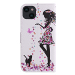 Descubra a nossa elegante e funcional capa de carteira para iPhone 14 Plus. Combinando estilo e proteção, apresenta um belo motivo de mulher e gato. Com a sua aba magnética, ranhuras para cartões e função de suporte, esta capa combina praticidade e elegância para uma utilização óptima no dia a dia.