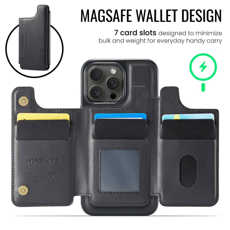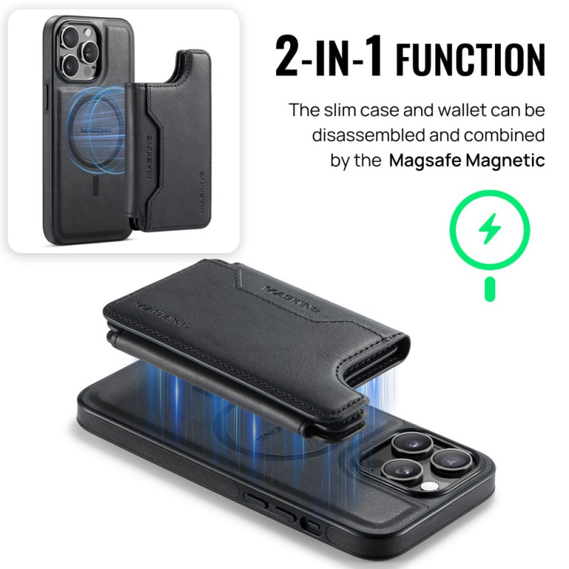 Descubra a capa MAGKING para iPhone 14 Pro Max, que combina durabilidade e funcionalidade. Fabricada em PC, TPU e PU, oferece uma excelente absorção de choques e durabilidade a longo prazo. O seu suporte ajustável permite alternar facilmente entre a leitura e a visualização de filmes, com um ângulo máximo de 135°. O design magnético integrado garante a compatibilidade com o carregamento sem fios MagSafe. O design 2 em 1 facilita a separação e combinação da estrutura fina e da carteira, graças à ligação magnética compatível com MagSafe. A carteira incorpora material de bloqueio RFID para proteger as suas informações privadas de digitalizações não autorizadas. Com 7 ranhuras para cartões e um bolso lateral, oferece uma arrumação versátil para os seus objectos essenciais.