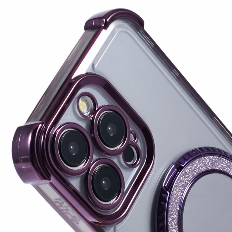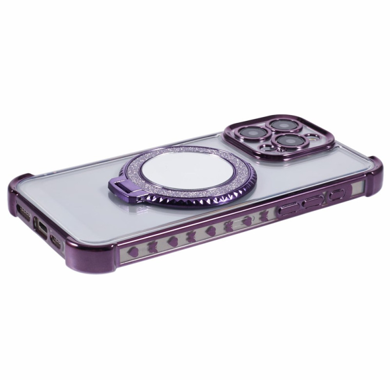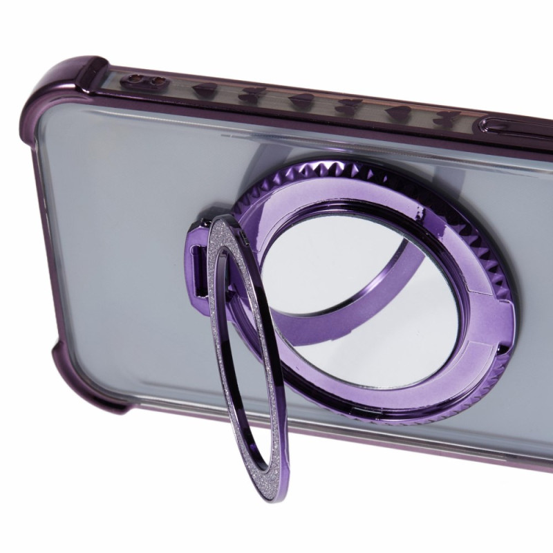 Capa elegante em TPU premium para iPhone 14 Pro Max com motivo de coração lateral, suporte de anel integrado e espelho prático. Proteção reforçada nos quatro cantos contra choques e quedas, mantendo um design fino e funcional.