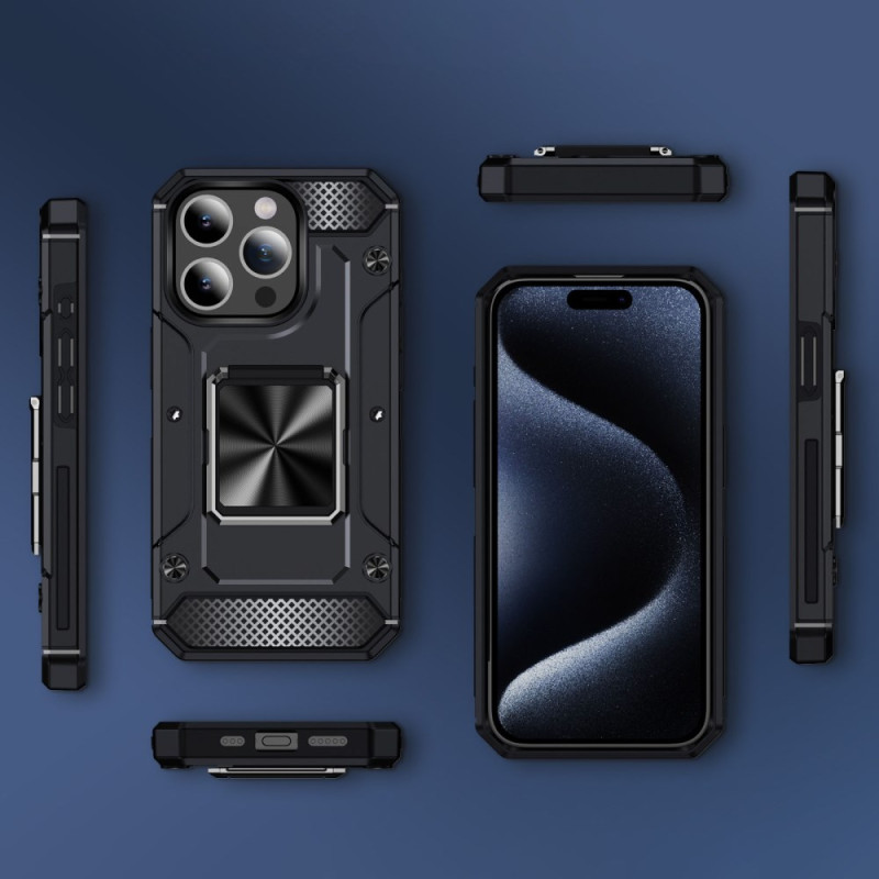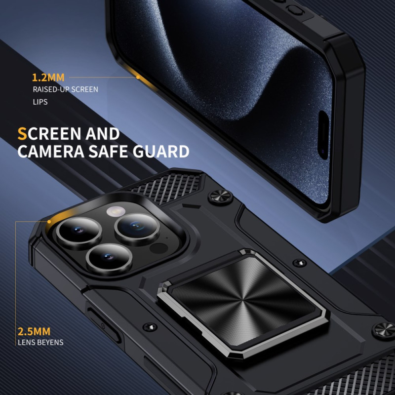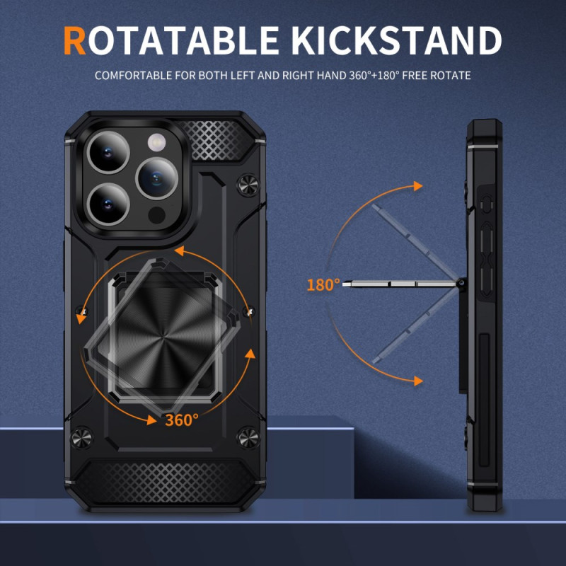 Protégez votre iPhone 14 Pro Max avec cette coque à double couche offrant une protection militaire anti-chocs. Son anneau rotatif à 360° fait office de support mains libres pratique, tandis que les bords surélevés protègent l'écran et la caméra.