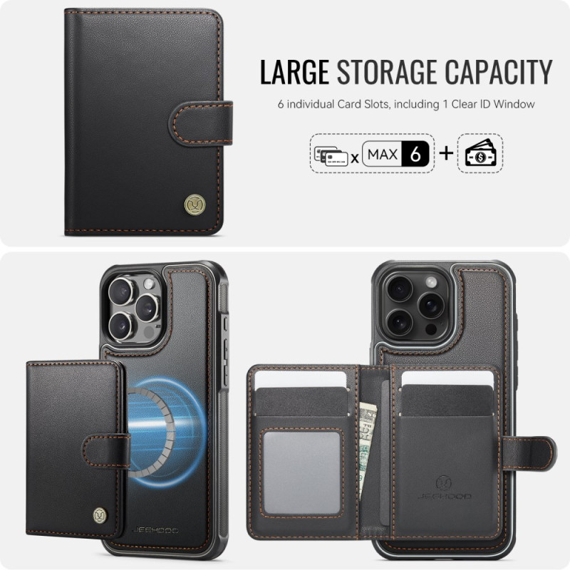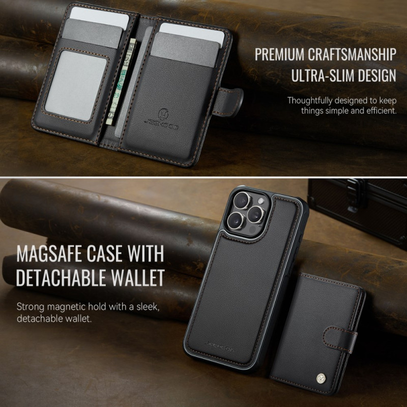 Descubra a nossa inovadora capa para iPhone 14 Pro com suporte para cartões RFID e suporte integrado. Combinando proteção robusta, funcionalidade e elegância, esta capa em pele oferece uma capacidade de armazenamento generosa para os seus cartões e notas. Compatível com MagSafe, assegura um carregamento sem fios eficiente. O seu suporte para cartões amovível e o suporte ajustável acrescentam versatilidade e conforto à sua utilização diária. Este capa versátil é o acessório ideal para o seu iPhone 14 Pro.