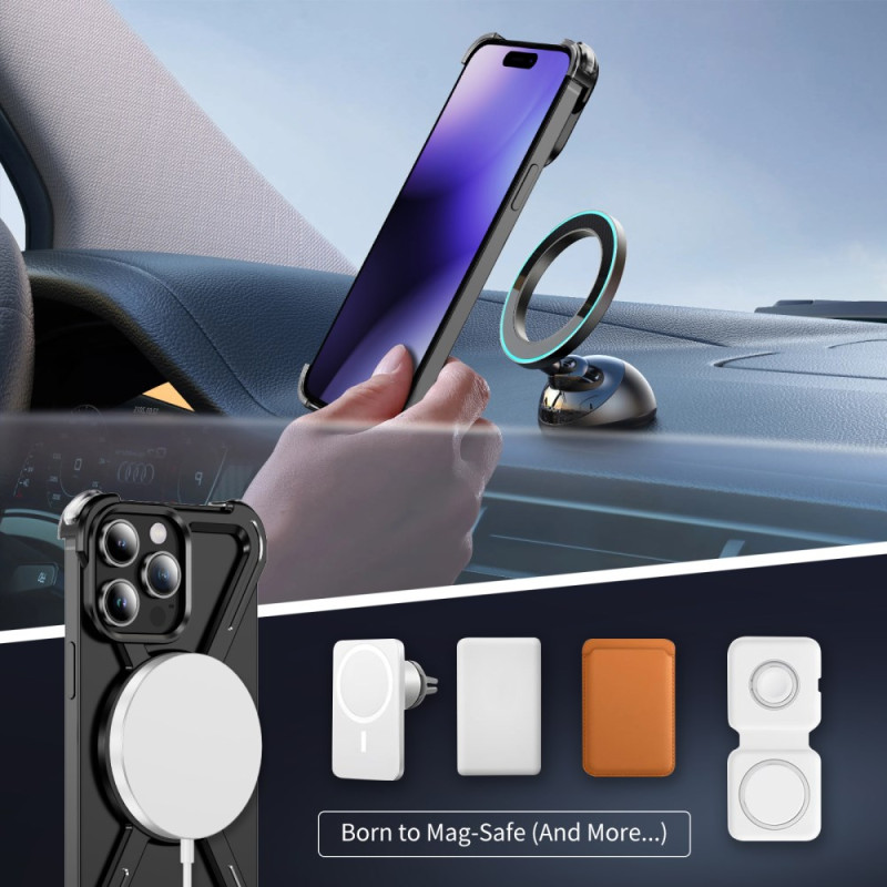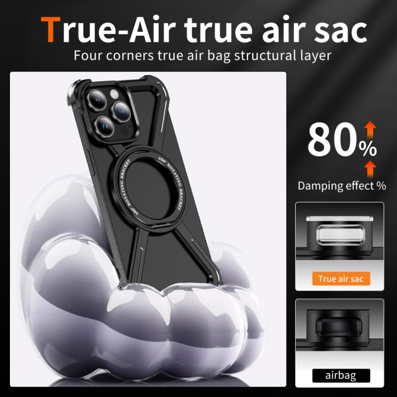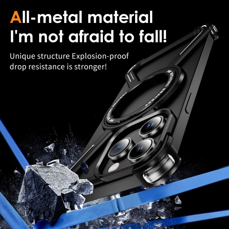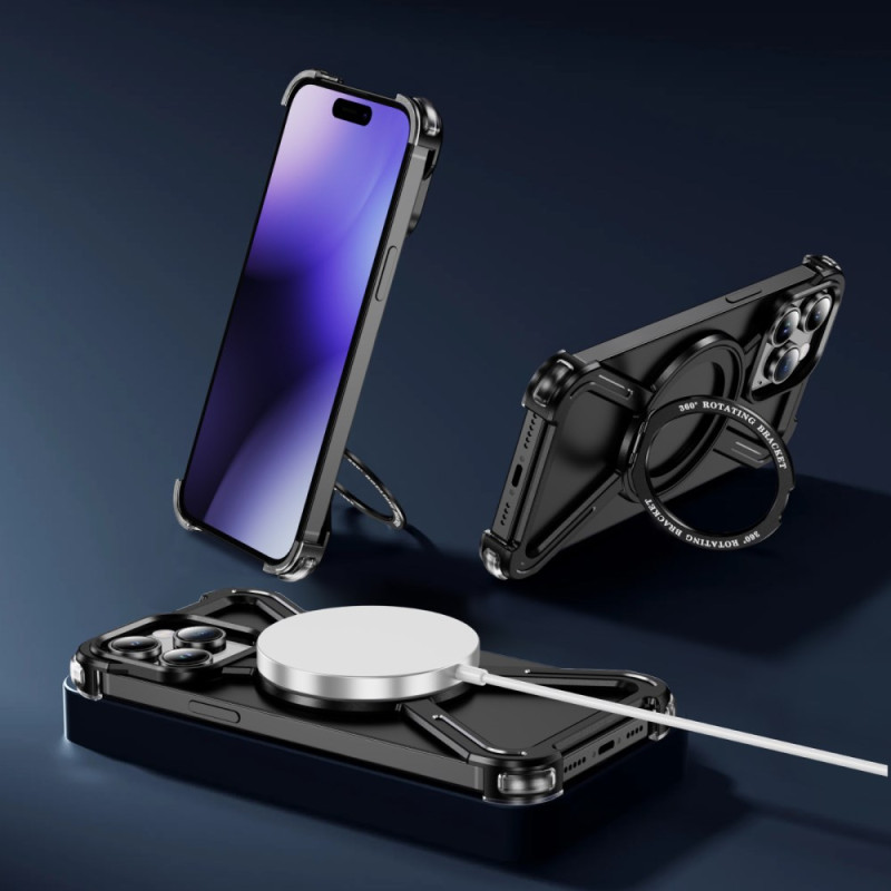 Descubra a nossa inovadora capa de proteção para o iPhone 14 Pro. Com um suporte rotativo de 360°, é compatível com MagSafe e oferece uma excelente dissipação de calor. O seu design minimalista em metal com moldura sem rebordos garante uma proteção óptima, preservando a estética do seu dispositivo.