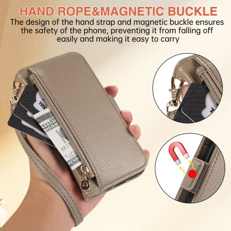Découvrez notre housse portefeuille élégante et multifonctionnelle pour iPhone 14 Pro. Fabriquée en cuir PU texturé et TPU résistant aux chocs, elle offre une protection optimale tout en ajoutant du style à votre appareil. Avec son miroir intégré, ses multiples rangements pour cartes et sa technologie de blocage RFID, cette coque allie praticité et sécurité.