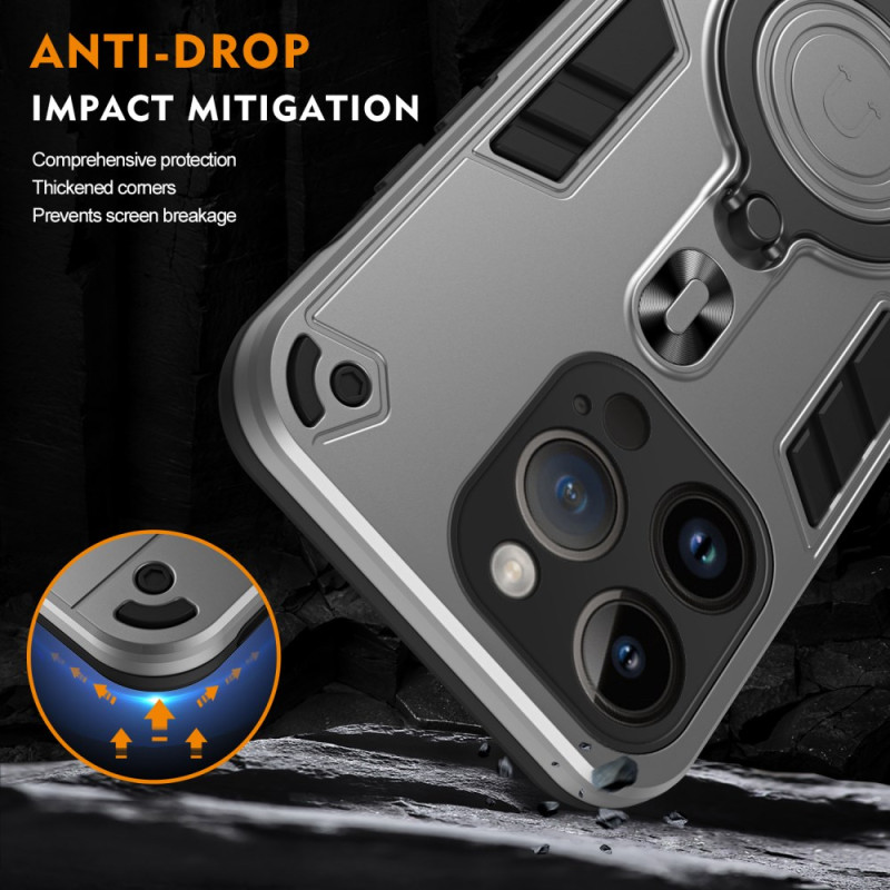 Descubra a nossa inovadora capa para iPhone 14 Pro, com um suporte rotativo de 360° e uma avançada proteção anti-queda. Fabricada com materiais de alta qualidade, oferece uma durabilidade excecional e compatibilidade com suportes magnéticos para automóvel. Desfrute de uma visualização sem mãos e de uma proteção óptima para o seu ecrã.
