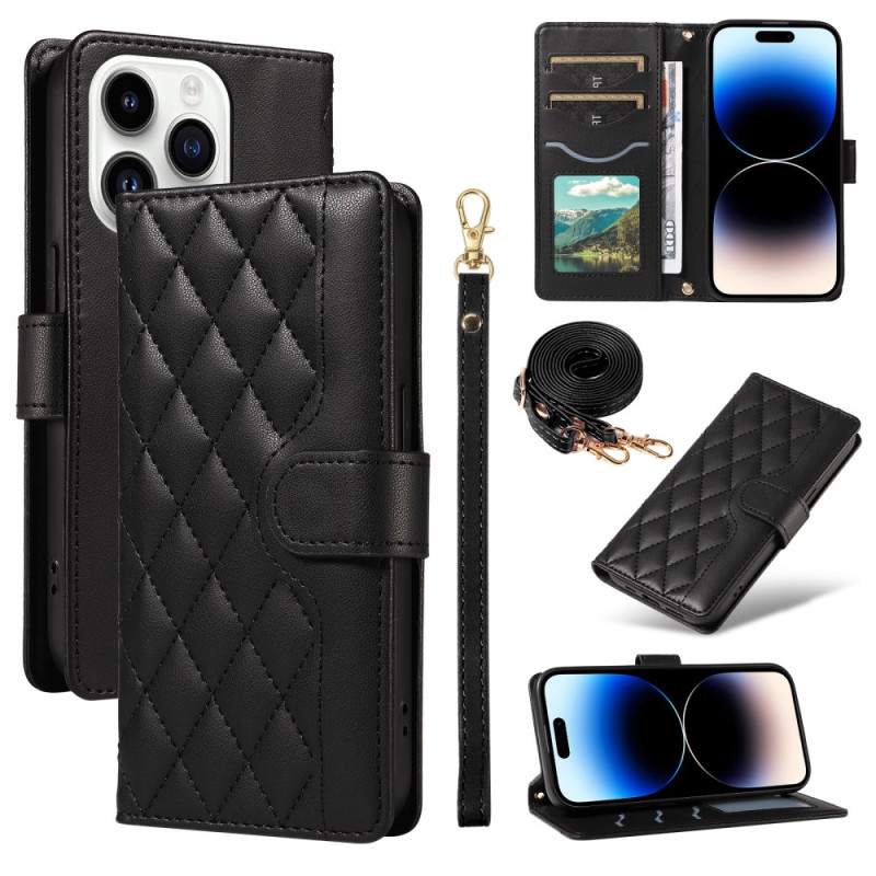 Descubra a nossa capa elegante e funcional para o iPhone 14 Pro. Fabricada em TPU mate e couro PU de alta qualidade, oferece uma proteção completa contra riscos e choques. O seu design rômbico moderno acrescenta um toque de estilo, enquanto as funcionalidades práticas, como o suporte para cartões e o suporte de visualização, fazem dela um acessório essencial.