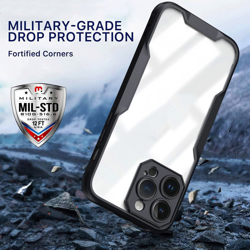 Descubra a nossa capa protetora definitiva para o iPhone 14 Pro. Certificada de acordo com as normas militares, resiste a quedas até 3,6 metros. Com os seus rebordos elevados e absorção de choques, o seu telefone está protegido contra riscos e impactos. O seu design preciso permite um acesso fácil a todas as suas funções.