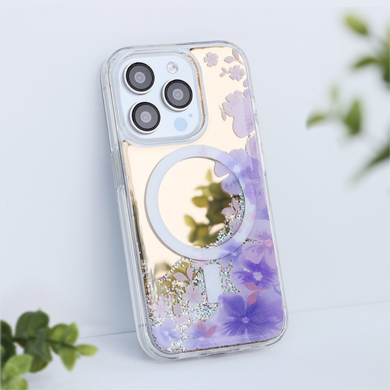 Descubra a nossa elegante capa para o iPhone 14 Pro, que combina estilo e proteção. Com um elegante padrão floral e uma prática superfície espelhada, esta capa combina TPU flexível e PC resistente para uma proteção óptima contra quedas de até 1,5 metros. Compatível com carregamento MagSafe graças ao seu anel magnético integrado, oferece acesso total às funções do seu telemóvel.