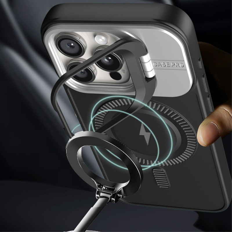 Descubra a nossa inovadora capa para iPhone 14 Pro com suporte integrado e proteção para a lente. Com um poderoso núcleo magnético e compatibilidade MagSafe, oferece a máxima proteção contra riscos e quedas. O seu design prático inclui cantos elevados e recortes precisos para facilitar a utilização.