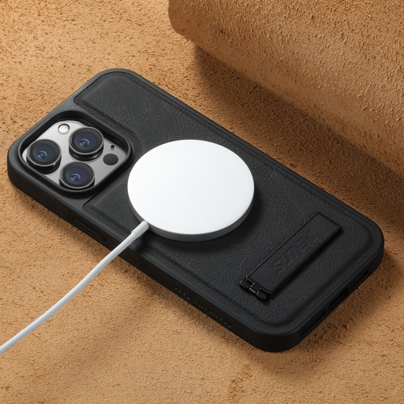 Descubra a capa SUTENI para iPhone 14 Pro, que combina estilo e funcionalidade. Esta capa magnética oferece uma proteção completa graças à sua textura em pele e ao suporte integrado. Compatível com o carregamento sem fios MagSafe, oferece uma excelente resistência ao desgaste e permite um acesso fácil a todas as funções do telefone.
