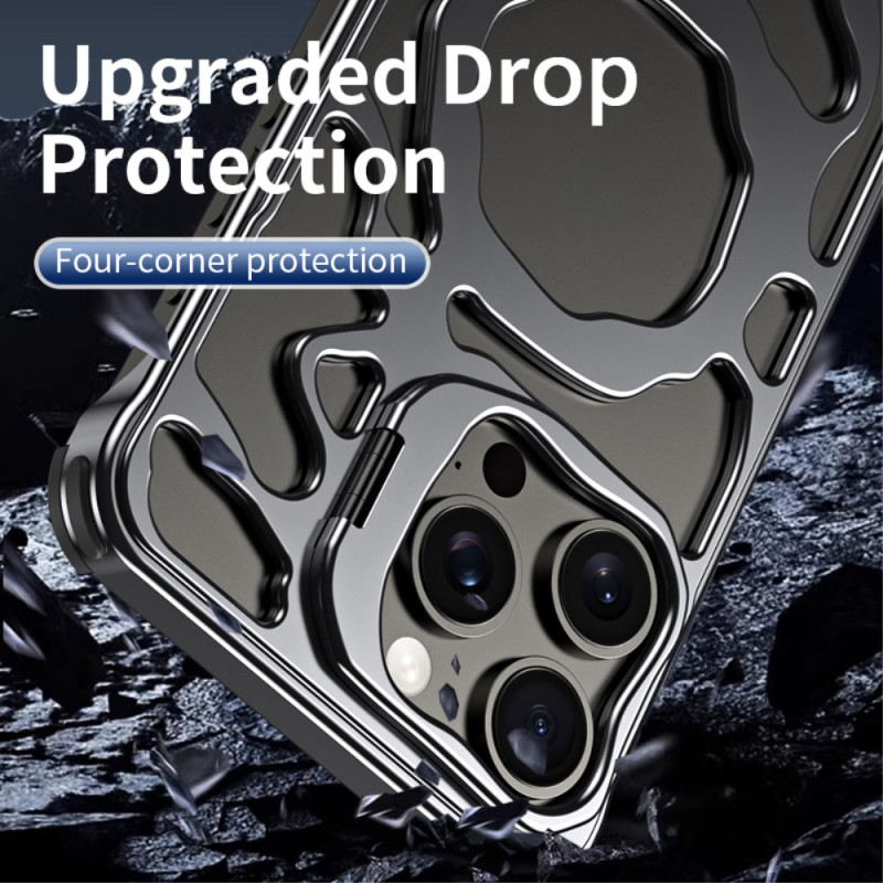 Descubra a nossa capa magnética em liga de alumínio aeroespacial para o iPhone 14 Pro. Com um design único aberto, oferece uma proteção completa, uma dissipação de calor eficiente e um suporte integrado invisível. Compatível com o carregamento sem fios MagSafe, esta capa combina funcionalidade e estilo para a melhor experiência de utilização.