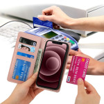 Fino e leve, funciona também como carteira e suporte para mãos livres.