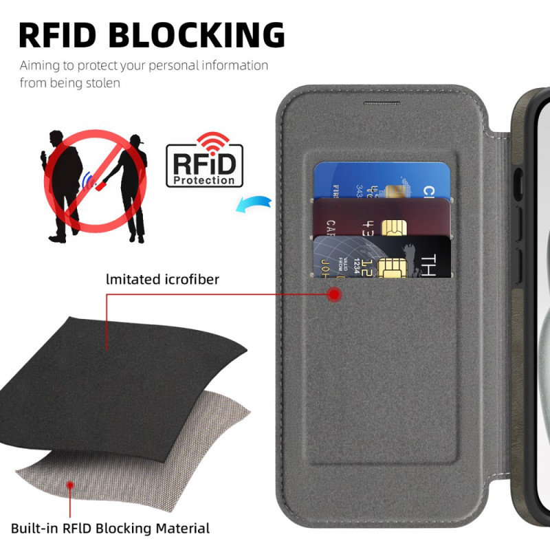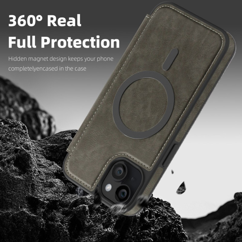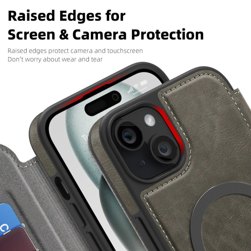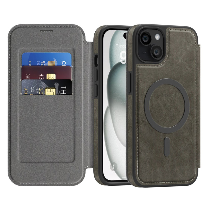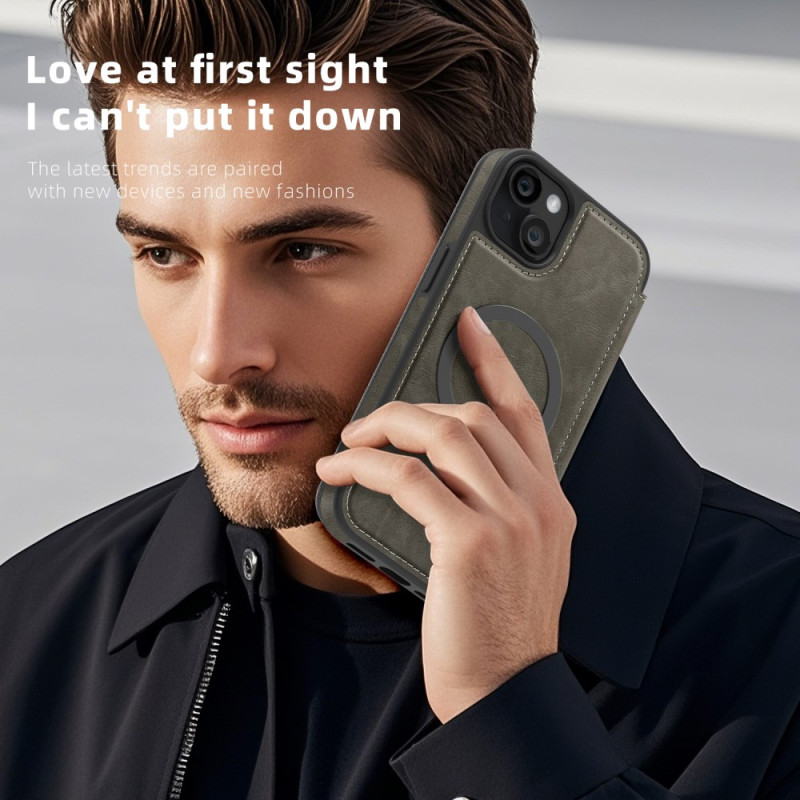 Descubra a nossa capa para o iPhone 15 Plus, que combina estilo e funcionalidade. Compatível com MagSafe, oferece proteção RFID, ranhuras para cartões e uma construção duradoura em couro e TPU. Proteja o seu dispositivo com estilo e praticidade.