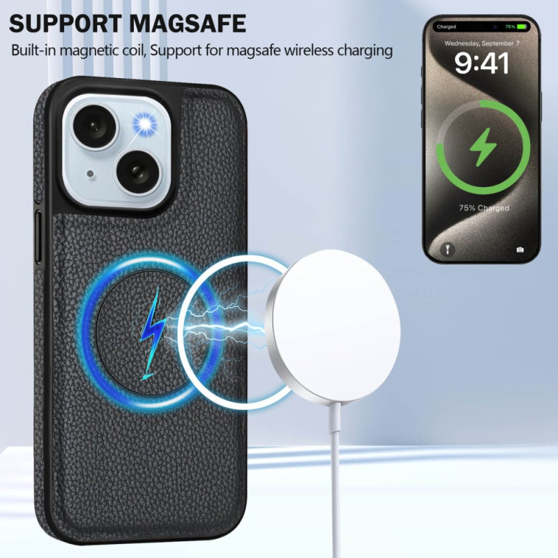 Descubra a nossa inovadora capa magnética para iPhone 15 Plus. Combinando elegância e funcionalidade, oferece uma proteção premium em pele PU e TPU, um suporte para cartões amovível para até 3 cartões e compatibilidade MagSafe para um prático carregamento sem fios. O seu design versátil inclui um suporte integrado para visualização em mãos-livres e um suporte magnético para automóvel.