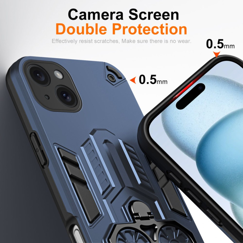 Descubra a nossa capa robusta para iPhone 15 Plus, que combina proteção e funcionalidade. Com um versátil suporte em forma de anel, oferece uma proteção completa contra choques e riscos, ao mesmo tempo que permite uma visualização conveniente a partir de uma variedade de ângulos. Ideal para videochamadas, jogos ou streaming.