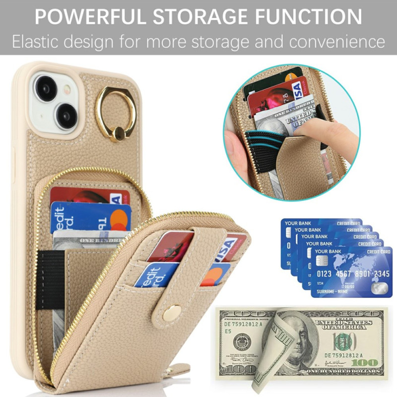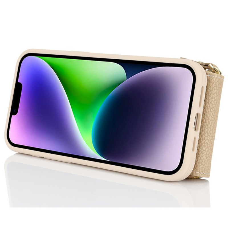 Descubra a nossa inovadora capa para iPhone 15 Plus / 14 Plus. Fabricada em pele PU de alta qualidade com um acabamento em grão de lichia e um revestimento interior em TPU flexível, oferece uma proteção completa e um aspeto requintado. O bolso com fecho de correr integrado com ranhuras para cartões, a alça de ombro amovível e o suporte para anéis rotativo fazem dela o acessório perfeito para uma utilização prática e segura no dia a dia. Esta versátil capa combina funcionalidade e estilo, oferecendo uma proteção óptima para o seu iPhone e tornando-o fácil de utilizar todos os dias.