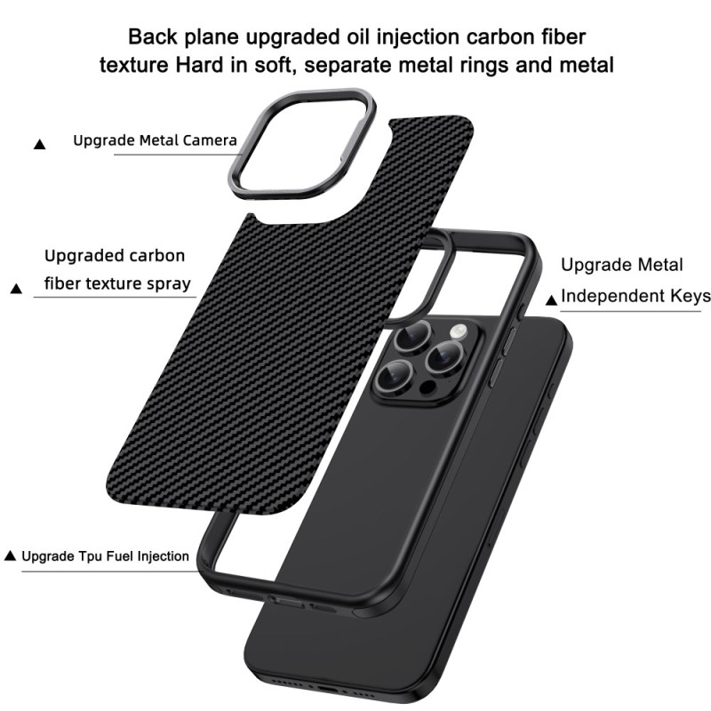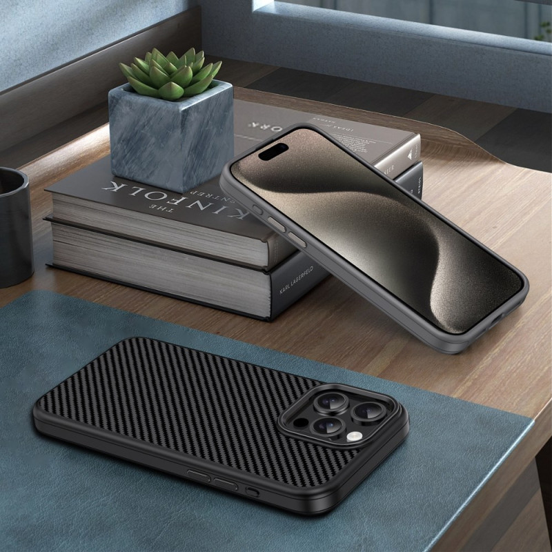 Descubra a capa IPAKY para iPhone 15 Plus, que combina estilo e proteção. Fabricada em TPU de alta qualidade com uma elegante textura de fibra de carbono, oferece uma durabilidade excecional e uma maior aderência. A sua estrutura metálica à volta da protecção para lente e os botões metálicos independentes proporcionam uma proteção extra e uma utilização tátil precisa.