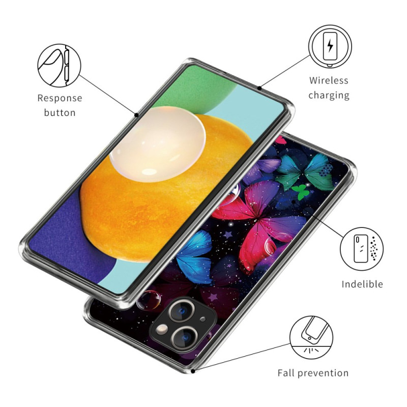 Proteja o seu iPhone 15 Plus com estilo com a nossa capa à prova de choque com borboletas coloridas. Combinando estilo e proteção, esta capa em TPU flexível absorve os choques, resiste aos riscos e oferece uma aderência confortável. O seu design ultrafino cabe perfeitamente no seu bolso, enquanto os seus botões sensíveis garantem uma utilização reactiva.