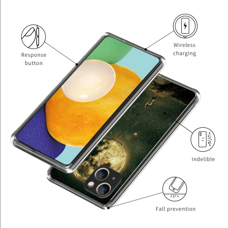 Proteja o seu iPhone 15 Plus com estilo com a nossa capa anti-choque com padrão de lua. Fabricada em TPU flexível, é absorvente de choques, resistente a riscos e ultrafina. O seu design requintado e único não desvanece e as suas margens transparentes não amarelecem. Desfrute de uma aderência confortável e de uma excelente capacidade de resposta dos botões.
