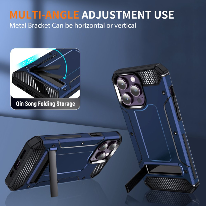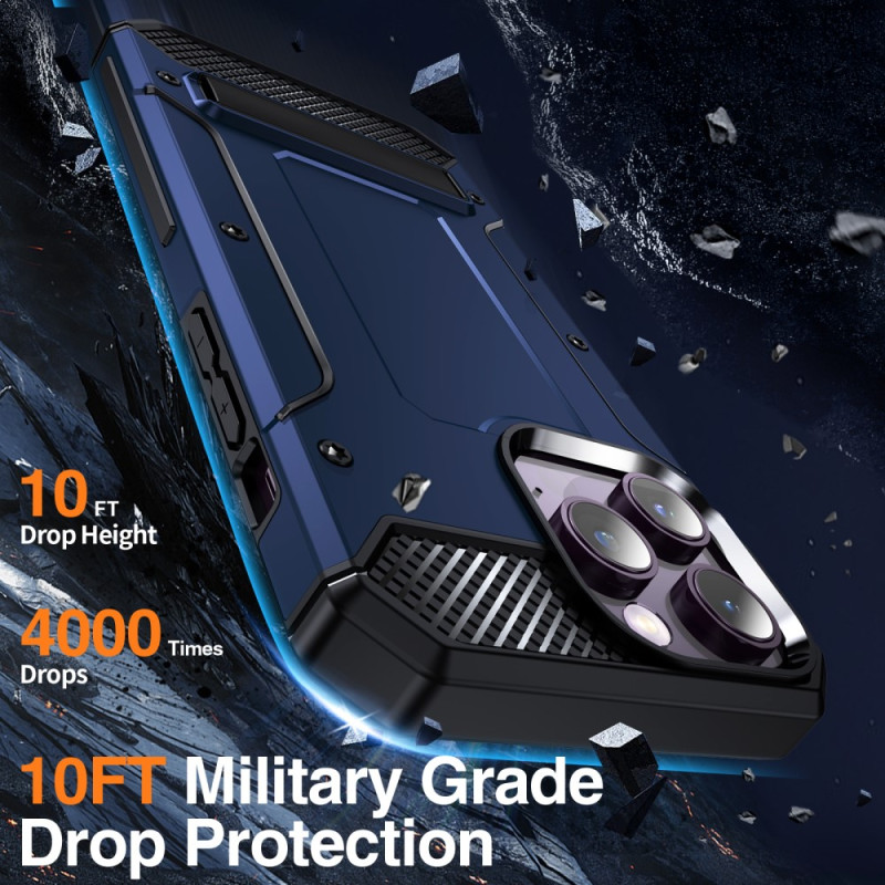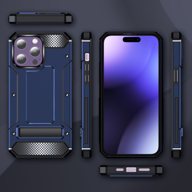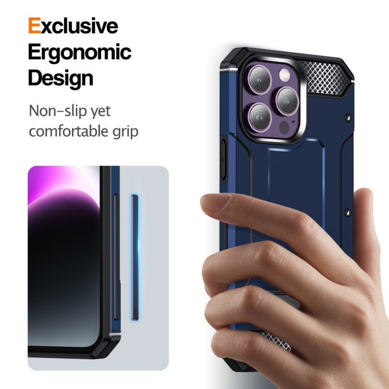 Proteja o seu iPhone 15 Pro Max com esta capa ultra-resistente que inclui um prático suporte amovível para uma utilização mãos-livres.