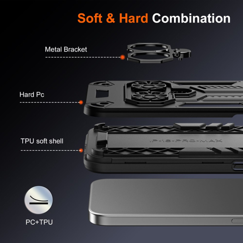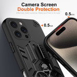 Descubra a nossa capa robusta e versátil para o iPhone 15 Pro Max. Fabricada com materiais híbridos de PC e TPU, oferece uma proteção completa contra choques e riscos. O seu suporte de anel rotativo e o suporte ajustável permitem-lhe utilizar as mãos livres para videochamadas, jogos ou streaming.