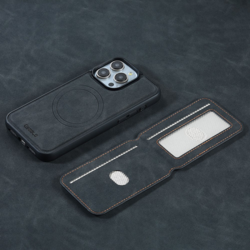 Descubra a nossa inovadora capa magnética para iPhone 15 Pro Max. Combinando um estilo retro com uma funcionalidade moderna, oferece proteção RFID, um suporte para cartões amovível e um design versátil. Desfrute de um prático armazenamento de cartões e de um suporte integrado para a melhor experiência de utilização. Dê ao seu iPhone uma proteção completa sem comprometer o estilo ou a funcionalidade.