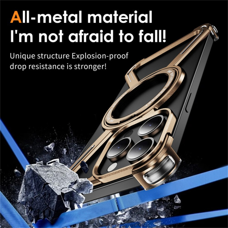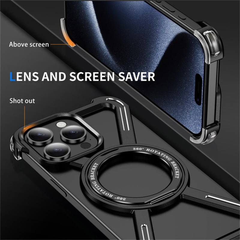 Descubra a nossa inovadora capa para iPhone 15 Pro. Fabricada em metal resistente, oferece uma proteção excecional contra choques e quedas. O seu suporte rotativo de 360° facilita a visualização com as mãos livres. Compatível com suportes magnéticos e carregamento MagSafe, esta capa combina funcionalidade e estilo para o seu dispositivo.