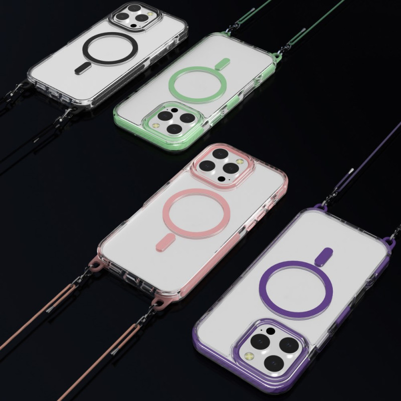 Descubra a nossa capa transparente para iPhone 15 Pro, que combina proteção e estilo. Fabricada com materiais de alta qualidade, oferece uma proteção reforçada contra quedas e riscos. É compatível com MagSafe para um cómodo carregamento sem fios. O cordão incluído facilita o transporte e evita a perda.