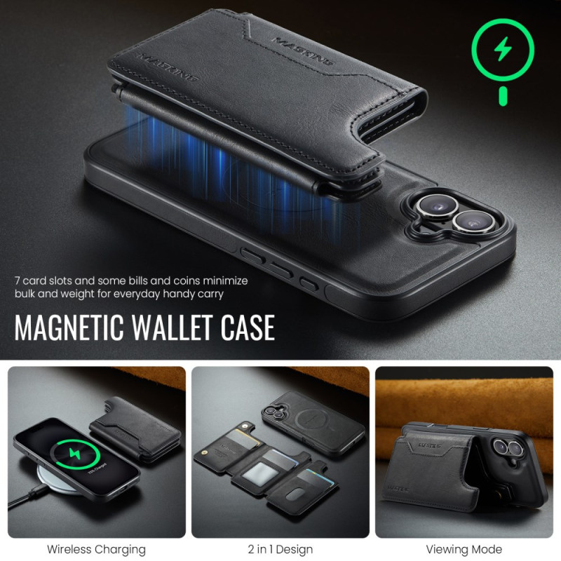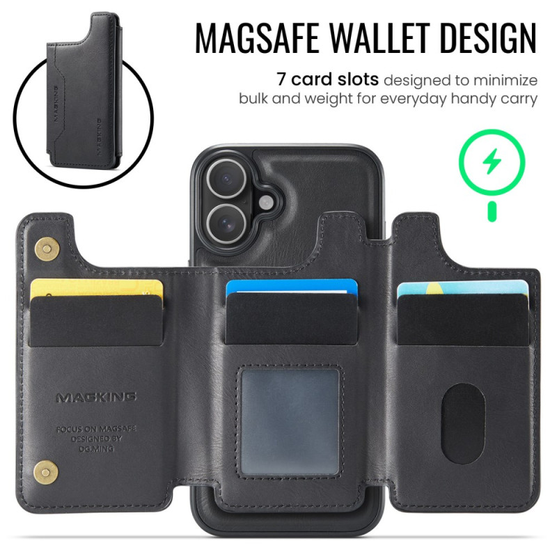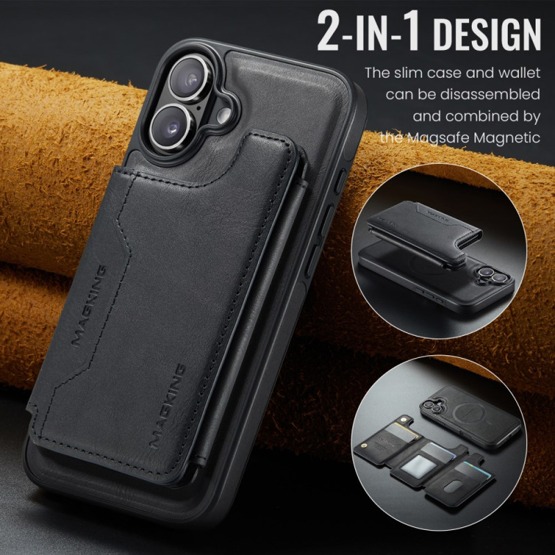 Descubra a capa MAGKING para iPhone 16 Plus, que combina durabilidade e funcionalidade. Fabricada em PC, TPU e PU, oferece uma excelente absorção de choques. O seu suporte ajustável, o design magnético compatível com MagSafe e a carteira destacável com proteção RFID fazem dela um acessório versátil e prático para o seu dia a dia.
