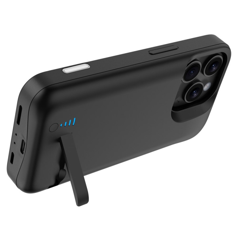 Esta capa para bateria de 6000 mAh proporciona uma vida útil alargada à bateria do iPhone 16 Pro Max, ao mesmo tempo que incorpora um suporte prático para uma utilização mãos-livres. O seu ajuste preciso permite-lhe aceder a todas as funções do telefone sem retirar a capa. Os indicadores LED mostram claramente os níveis de energia e um botão inteligente optimiza a utilização da bateria incorporada. Fabricada com materiais robustos, combina proteção e carregamento num único acessório. O seu circuito integrado reduz o risco de sobrecarga, curto-circuito ou sobreaquecimento, para uma utilização quotidiana segura.