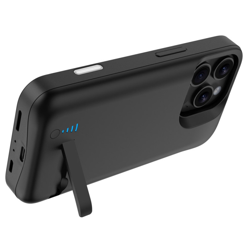 Esta capa para bateria de 5000 mAh prolonga eficazmente a vida útil da bateria do iPhone 16 Pro, ao mesmo tempo que incorpora um suporte prático para uma utilização mãos-livres. O seu ajuste preciso permite-lhe aceder a todas as funções do telefone sem retirar a capa. Os indicadores LED mostram claramente os níveis de energia e um botão inteligente optimiza a utilização da bateria. Fabricada com materiais robustos, combina proteção e carregamento num único acessório. O seu circuito integrado limita o risco de sobrecarga, curto-circuito ou sobreaquecimento, garantindo uma utilização segura todos os dias.