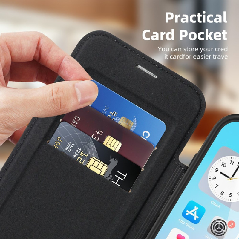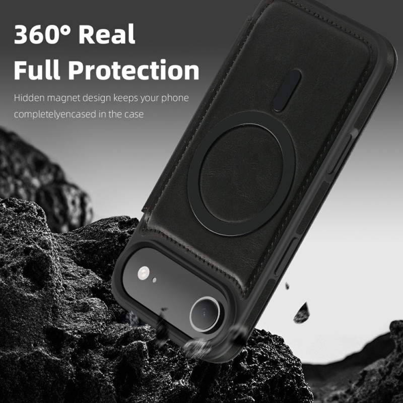 Combine um estilo requintado com segurança avançada com esta capa para iPhone Air em pele PU castanha, compatível com MagSafe. O seu design sóbrio e elegante incorpora ímanes poderosos para um carregamento sem fios suave e estável, preservando as linhas finas do seu smartphone. Com práticas ranhuras para cartões e tecnologia RFID integrada, protege as suas informações pessoais de digitalizações não autorizadas. Com rebordos elevados para proteger o ecrã e a câmara, proporciona uma proteção completa para a utilização diária.