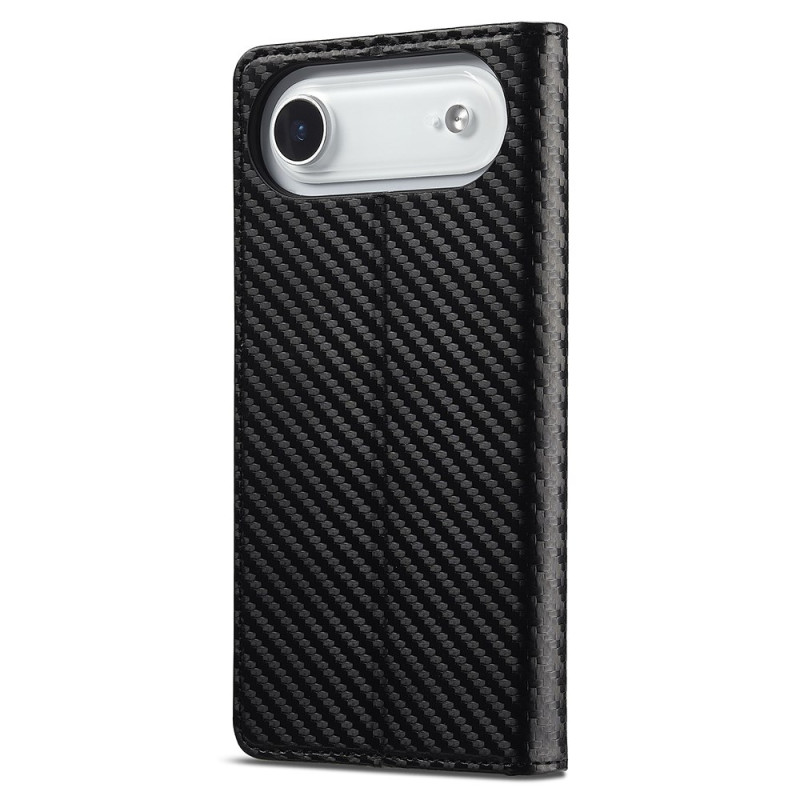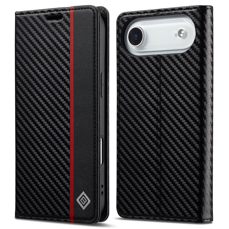 Com o seu elegante padrão de fibra de carbono às riscas, esta capa de carteira LC.IMEEKE para o iPhone Air combina modernidade e praticidade. Fabricada em couro PU resistente e TPU macio, proporciona uma proteção eficaz contra choques e riscos, ao mesmo tempo que é agradável ao toque. Com três ranhuras para cartões e um bolso para dinheiro, pode facilmente substituir uma carteira quando estiver a passear. A sua poderosa aba magnética protege os seus pertences e o seu suporte dobrável permite-lhe desfrutar dos seus vídeos ou chamadas com as mãos livres.