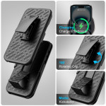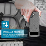 Quando uma proteção sem compromissos se alia a uma versatilidade extrema, o iPhone 17 está pronto para tudo. A sua principal inovação é a cobertura deslizante do ecrã, uma armadura móvel que protege o ecrã de riscos e choques quando não o está a utilizar. Construída em PC e TPU com cantos reforçados, foi concebida para absorver os impactos mais graves. Liberte as suas mãos com o suporte de vídeo integrado ou prenda-o firmemente ao seu cinto com o clipe giratório para um acesso rápido. Tudo isto numa textura tecida que confere estilo a esta fortaleza.
