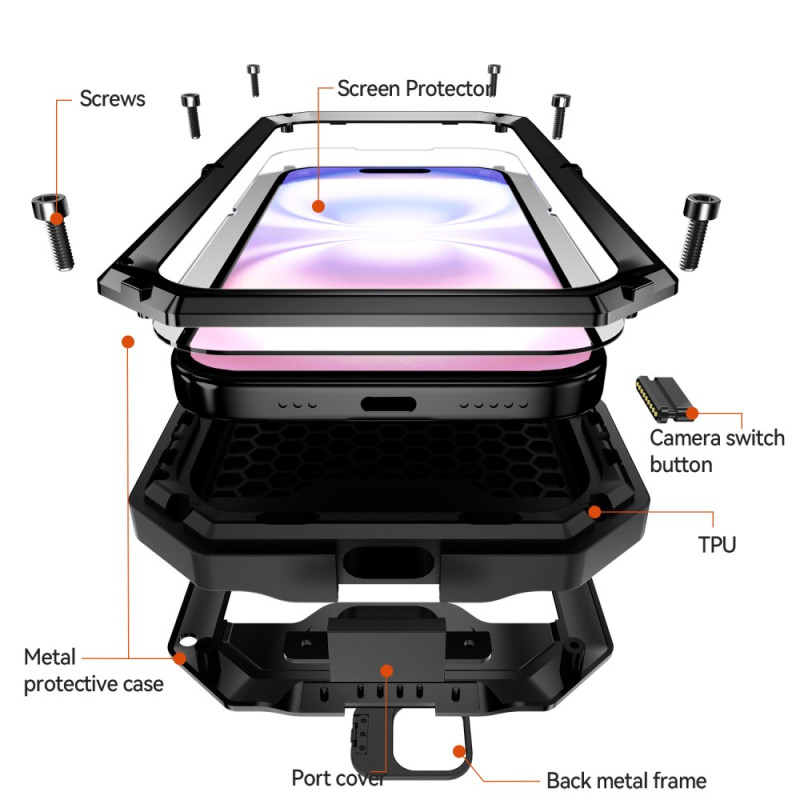 A proteção para o seu iPhone 17 atinge novos patamares, cobrindo cada milímetro, cada porta e cada lente. A sua blindagem multimaterial incorpora um ecrã de vidro temperado e uma tampa deslizante para a câmara, proporcionando um santuário inviolável para o seu dispositivo. Com classificação IP54, é à prova de poeiras e salpicos, permitindo-lhe utilizá-lo com confiança em todas as condições. Apesar desta fortaleza, a funcionalidade continua a ser primordial: o suporte mãos-livres é ativado para os seus suportes e o carregamento sem fios é fácil.