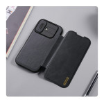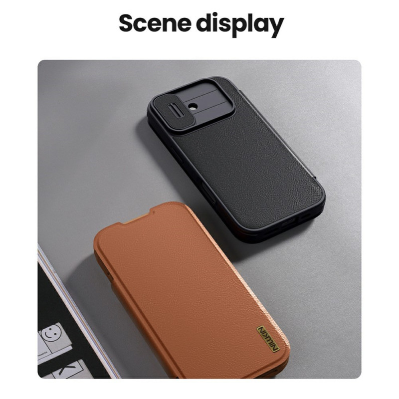 A série NILLKIN Qin Pro reinventa a clássica capa para iPhone 17 com um engenho moderno e uma elegância intemporal. A sua principal inovação é a tampa deslizante da câmara, que protege a sua protecção para lente contra riscos e garante a sua privacidade com um simples gesto. Revestida de couro PU de alta qualidade, aloja os seus cartões essenciais e até uma caneta stylus graças ao seu laço integrado, tudo num perfil extraordinariamente fino. A sua estrutura híbrida proporciona uma defesa completa contra os choques e perigos do dia a dia, envolvendo o seu dispositivo em segurança.