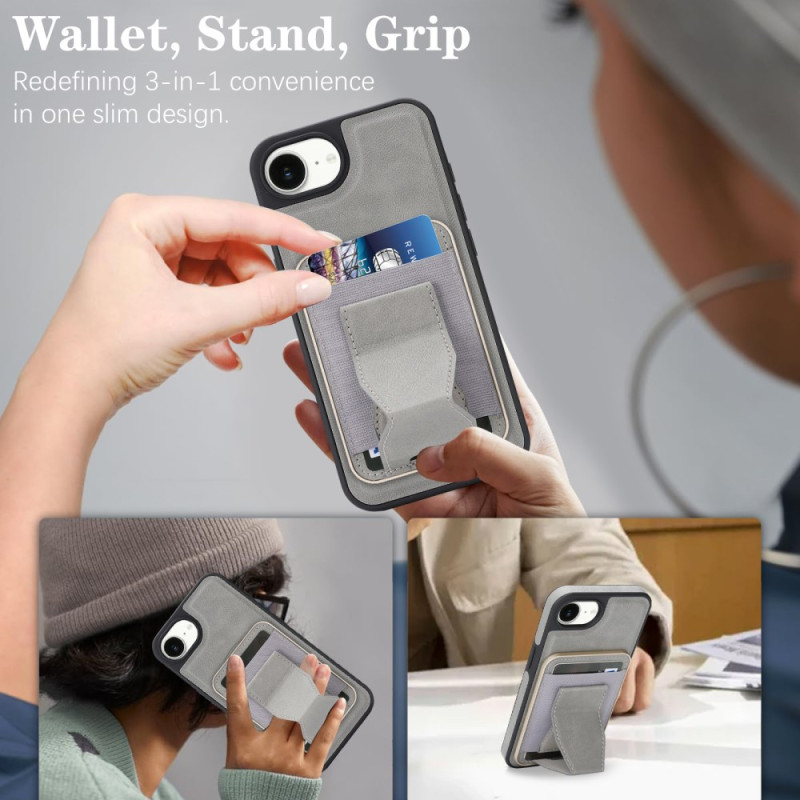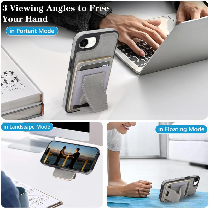 Découvrez notre coque multifonction compatible MagSafe pour iPhone 17E / 16E. Alliez protection premium et praticité avec un porte-cartes détachable pouvant contenir jusqu'à 6 cartes et un support intégré offrant 3 angles de vue ajustables.